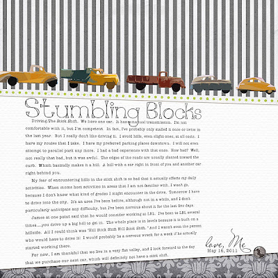 After a bit of a dry spell, I've got on a roll again. Five layouts to share! I've had a folder with photos set aside since the beginning of the year, and I was beginning to think that they might never get scrapped. I think my main obstacle was that the photos themselves just weren't very good. But then I gave them a new look, and with some of my NSD purchases, got them scrapped.